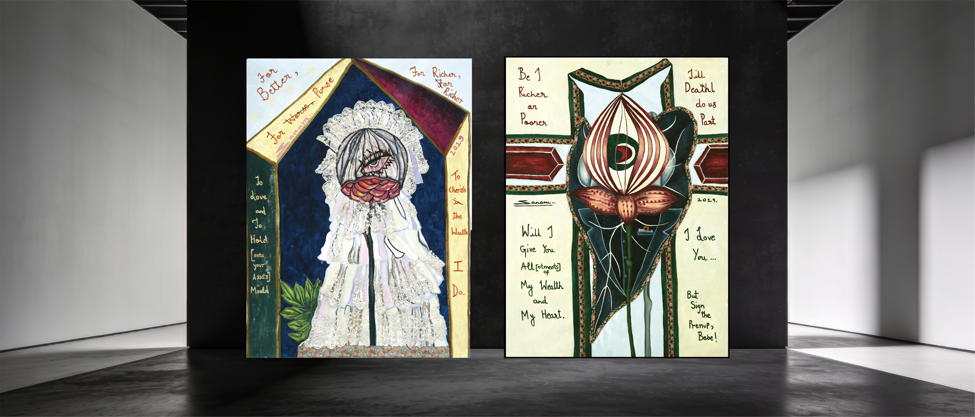 Medium: Hand-cut Vegan Leather Cutouts Mounted on PU