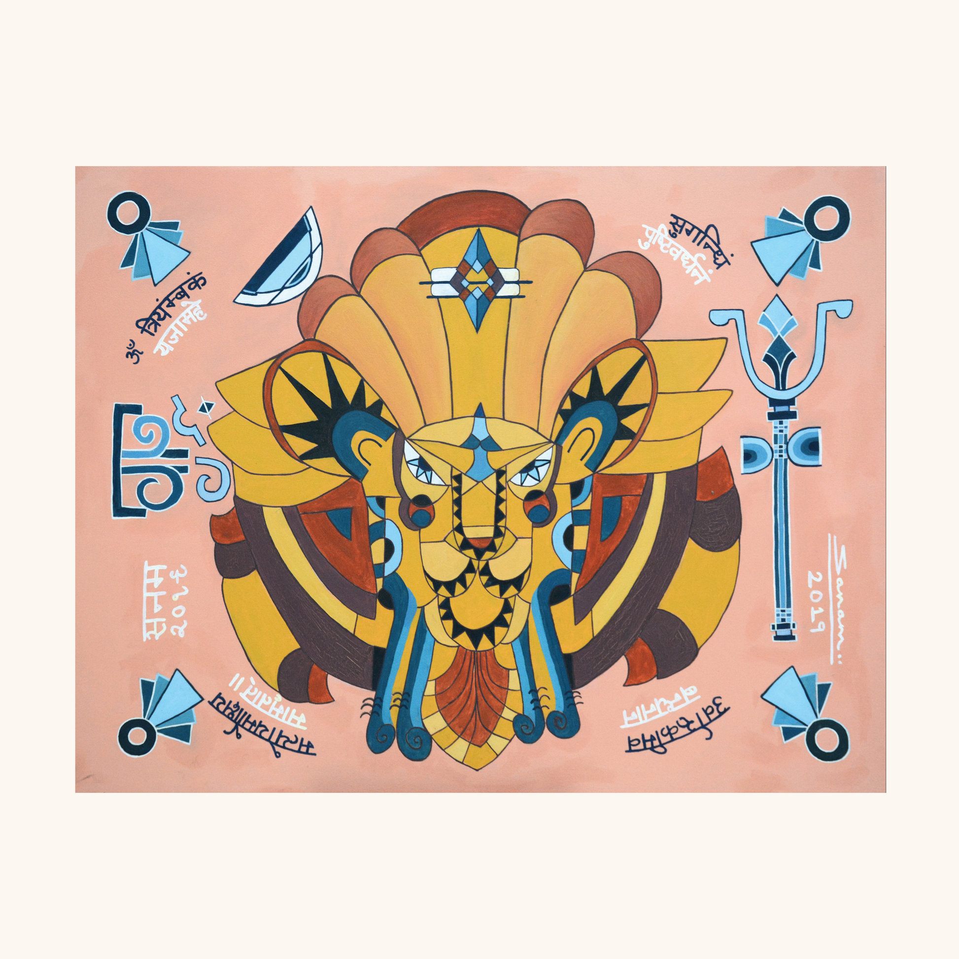 Across the series appears Shiva’s powerful liberation mantra, written in full:
