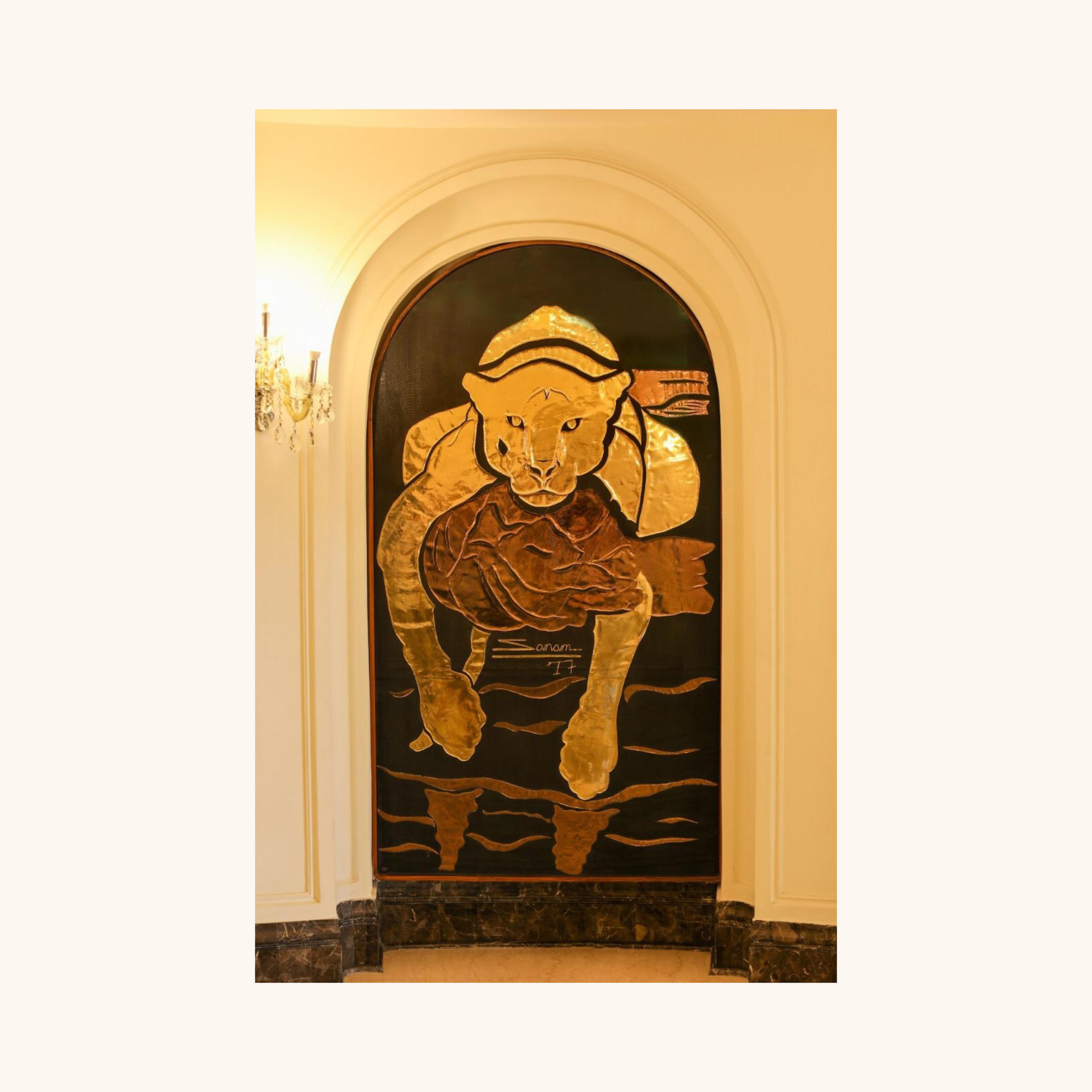 The Feline Series honours the quiet authority, strength, and grace of the great cats through restraint rather than excess. Created using hand- cut vegan leather, the works rely on minimal lines and intentional negative space, allowing form to emerge through absence. As a vegan artist, the choice to avoid animal leather is rooted in care for animals, while also achieving a surface that reads as metallic, tactile, and quietly opulent.
